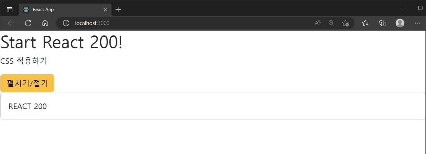 버튼을 클릭하면 toggle 함수가 실행되고, toggle 함수에서 setState() 함수가 실행되면 render() 함수가 한 번 더 실행되어 변경된 fadeInOut 값이 적용되는 것입니다.
